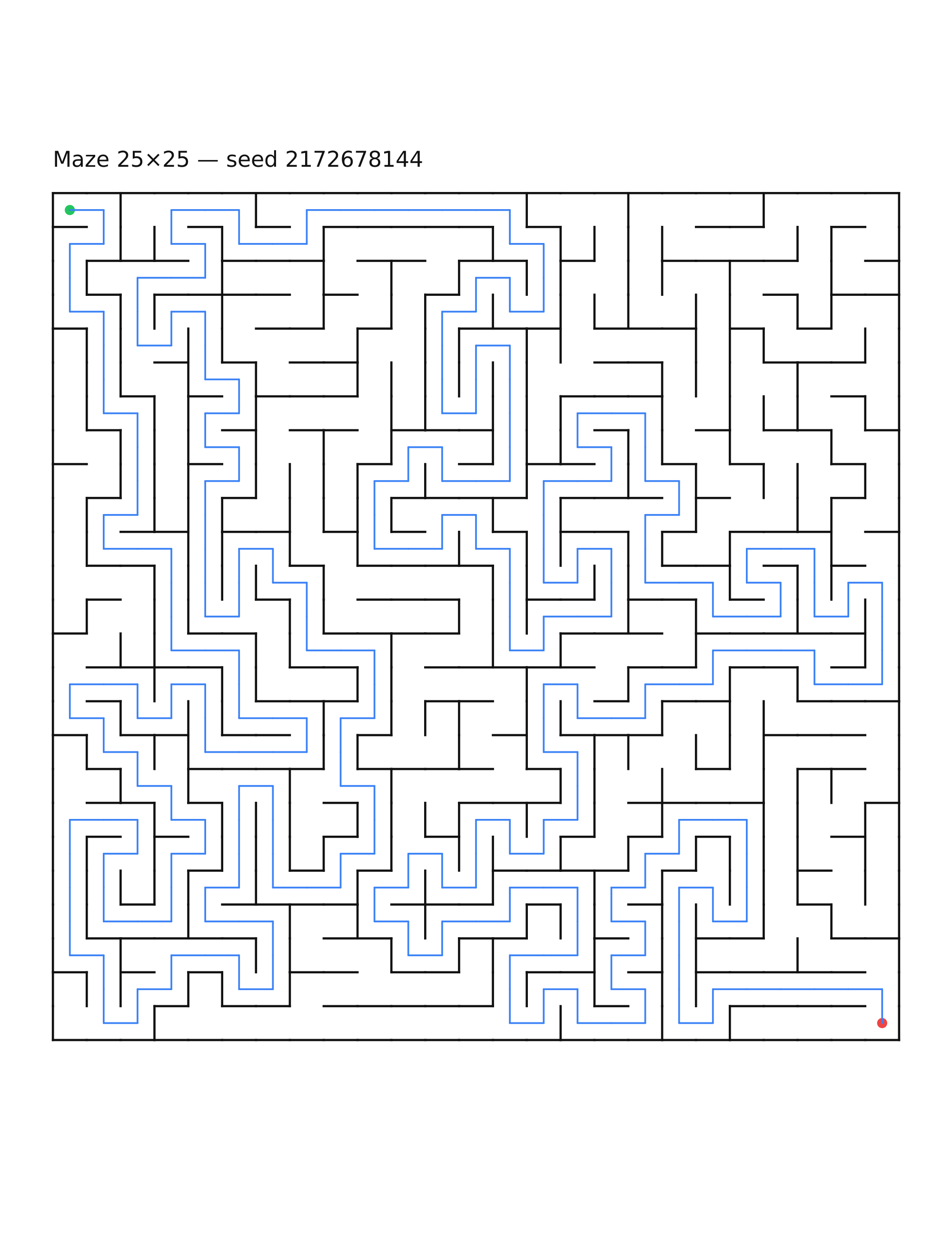 Printable maze puzzle — vector PDF with a crisp preview, plus an optional solution.