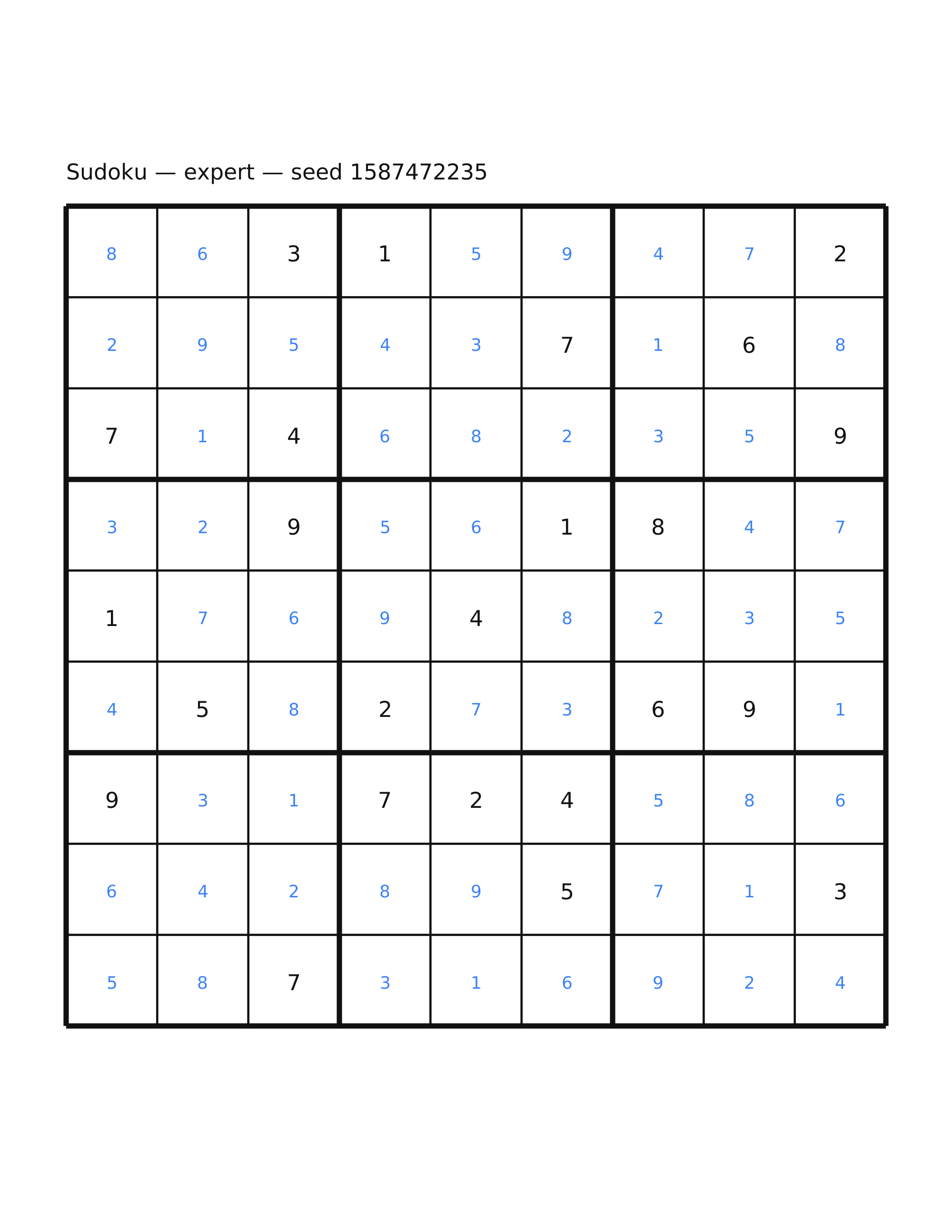 Printable sudoku puzzle — vector PDF with a crisp preview, plus an optional solution.
