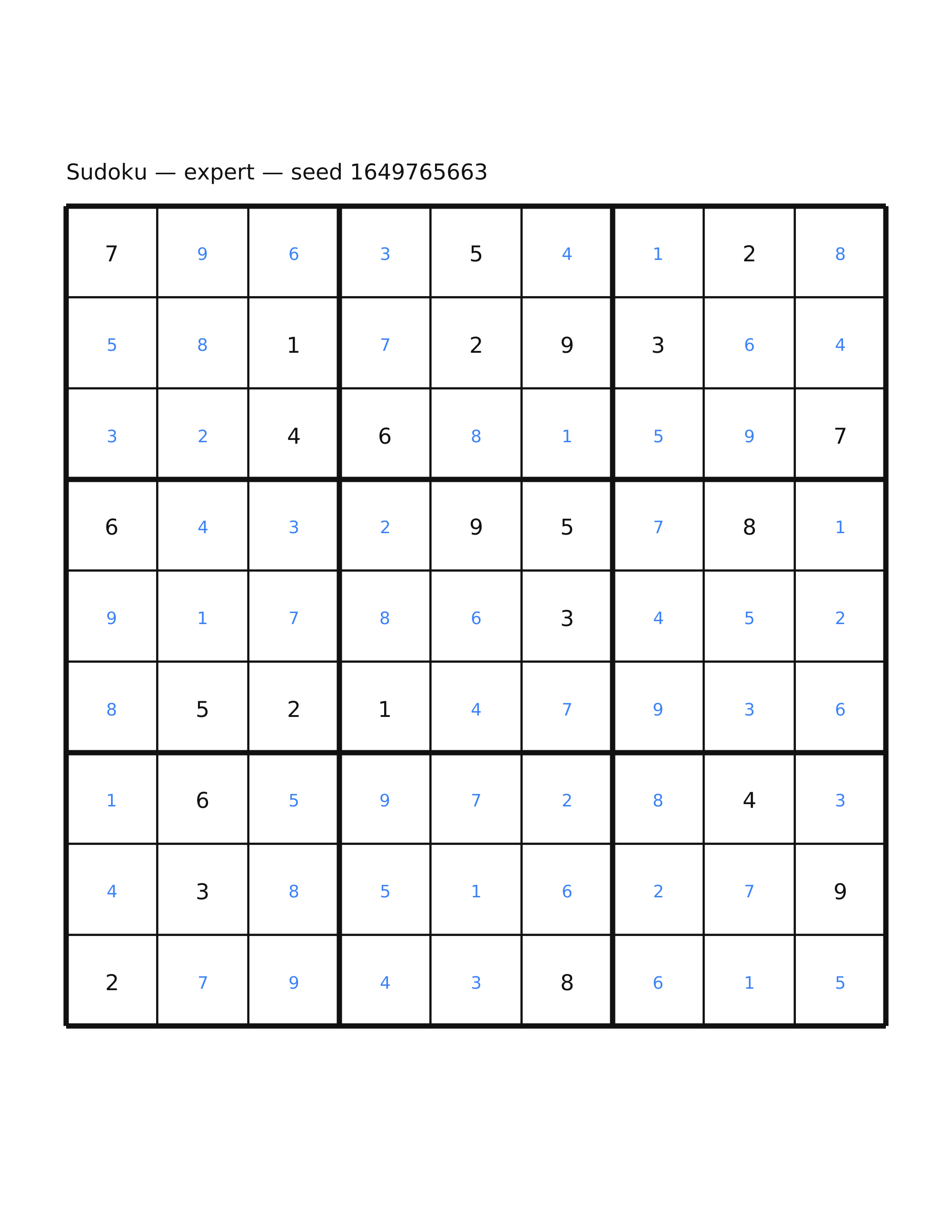 Printable sudoku puzzle — vector PDF with a crisp preview, plus an optional solution.