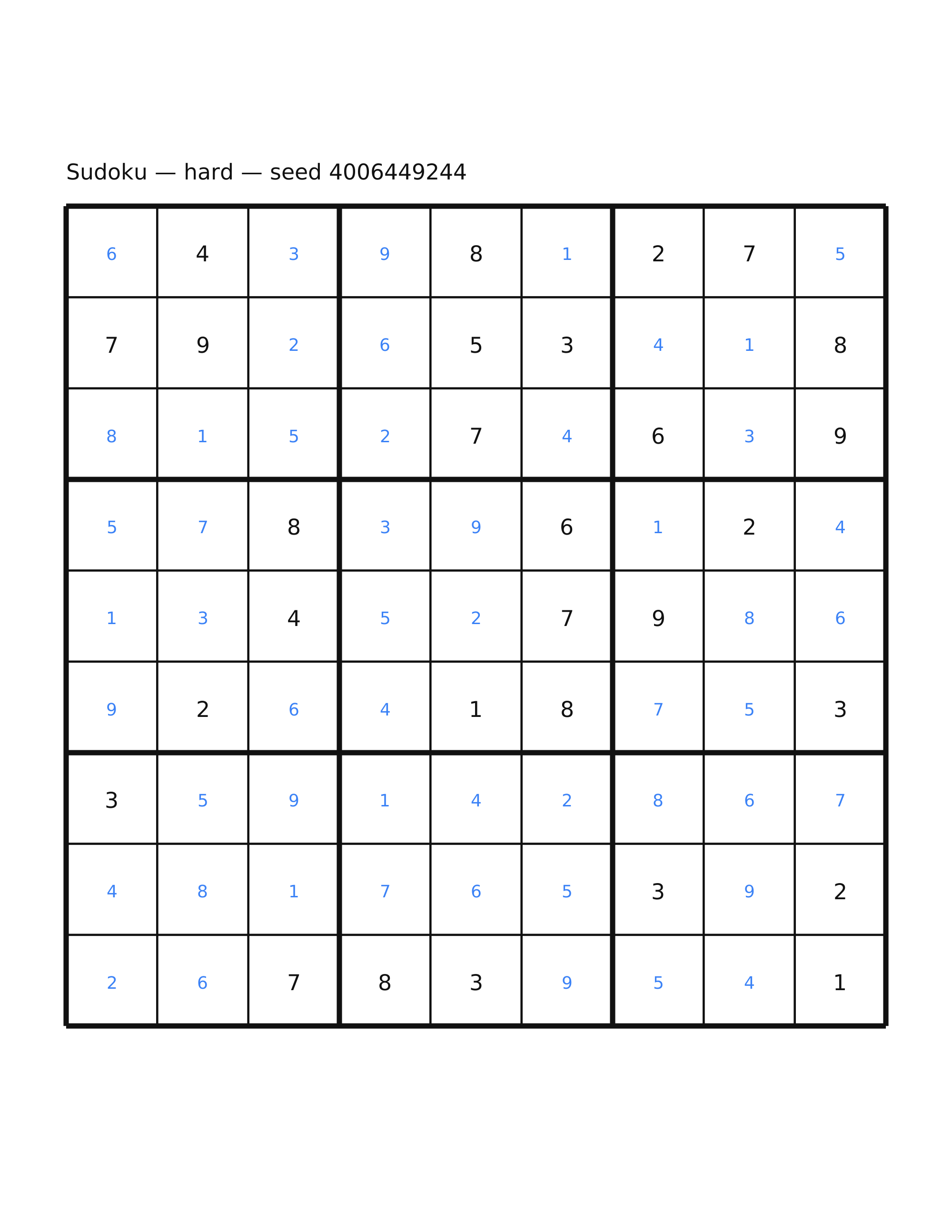 Printable sudoku puzzle — vector PDF with a crisp preview, plus an optional solution.